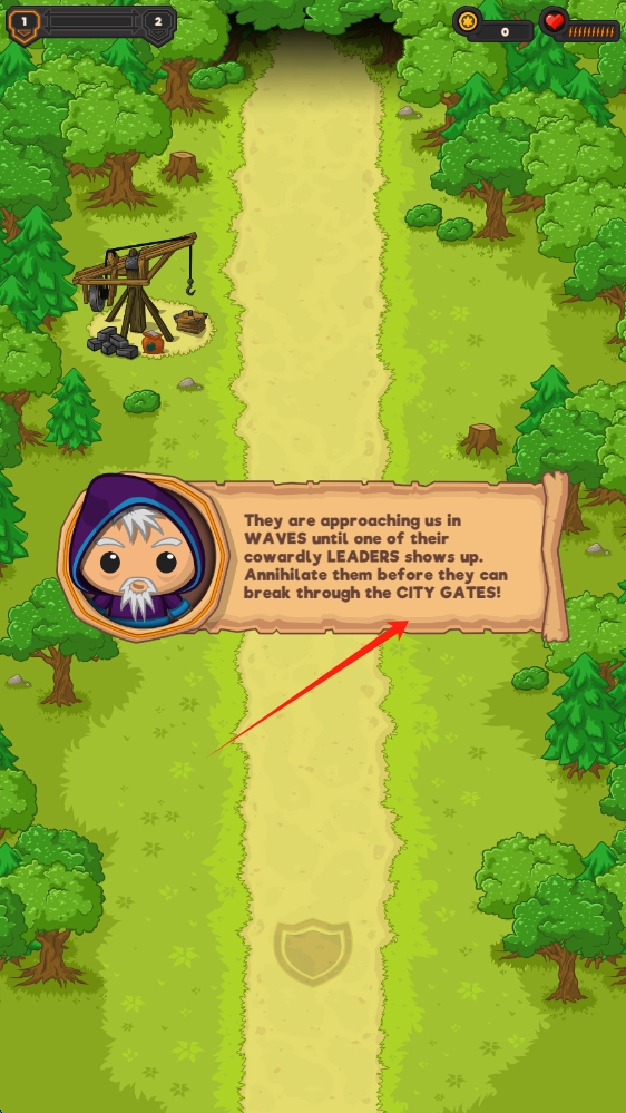 1、在游戏剧情界面,了解敌人进攻方式,做好防御准备,敌人会一波波来袭,目标是攻破城门。