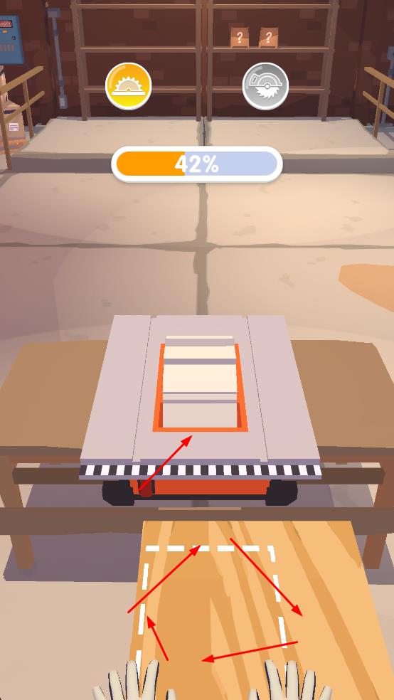 2、操控锯片精准切割木板,完成对应任务,推动进度条数值提升,收获完成标识。