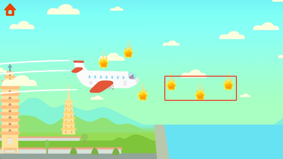 3、航线解锁探索:完成3次成功起飞后,会解锁新的岛屿航线,新场景里有会动的恐龙云朵、彩色跑道,让孩子在探索新内容中保持兴趣。