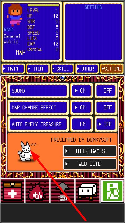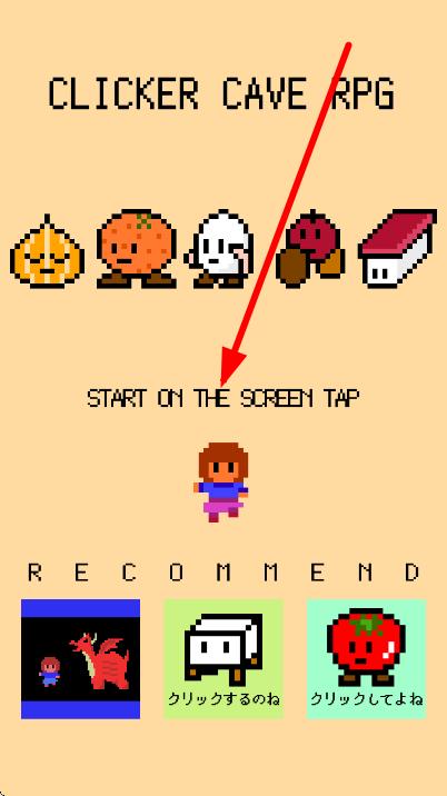 1、点击屏幕中START ON THE SCREEN TAP文字区域,开始CLICKER CAVE RPG冒险,进入角色信息界面。