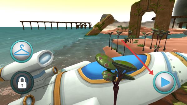 1、在飞船界面,点击右侧蓝色三角按钮,离开飞船,进入开放世界场景,开启探索流程。