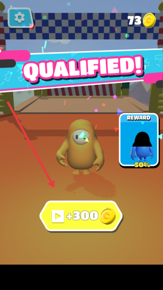 3、成功通关后,点击黄色+300按钮领取金币奖励,可解锁新角色外观,继续挑战后续关卡。