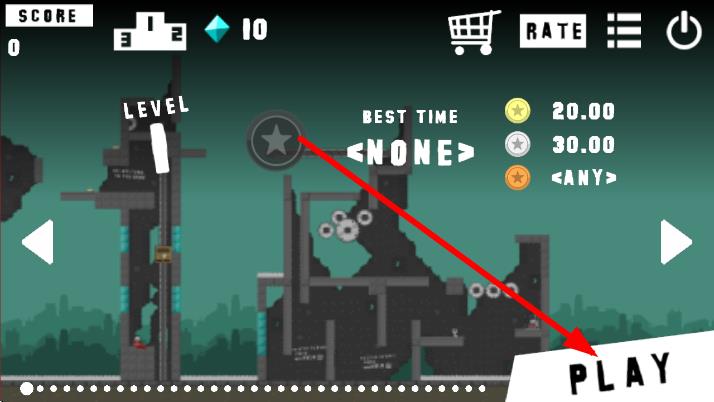 1、在游戏关卡选择界面,点击右下角的PLAY按钮,进入LEVEL1关卡,开启冒险挑战。