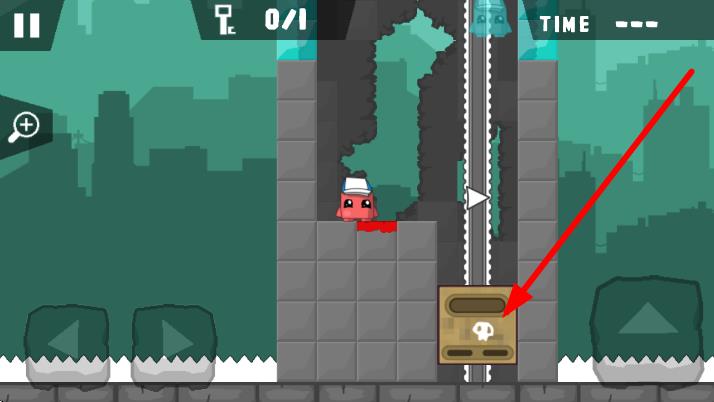 2、进入关卡后,操控红色角色,朝着红色箭头指向的带有骷髅标志的箱子移动,注意躲避障碍和危险。