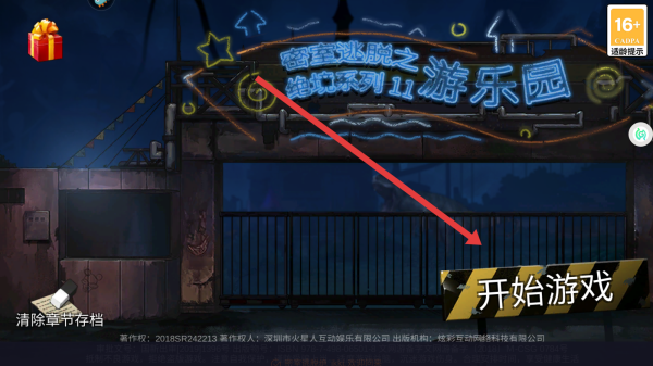 1、在密室逃脱之绝境系列11游乐园主界面,点击右侧开始游戏按钮,进入关卡选择页面,准备开启逃脱挑战。