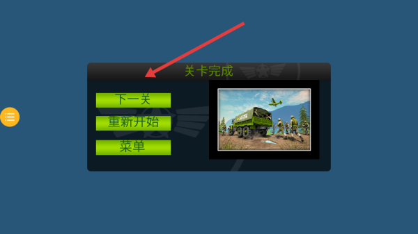 3、关卡完成后,在结算界面点下一关,可衔接新军事任务,重开或回菜单按需选择。