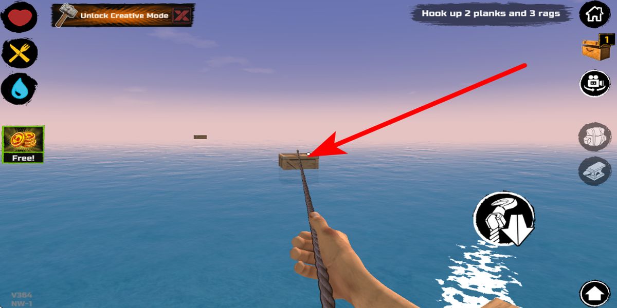 1、收集制作生存:使用钩子勾住海洋上的漂浮物,将物资制作成有用的工具武器,加固木筏,满足基本生存需求,为后续发展基础。