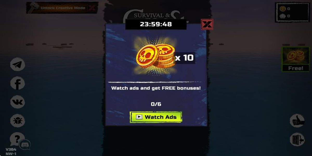 3、扩建探索发展:利用收集的材料扩建木筏,制作皮划艇前往岛屿,无需资源制作物品,观看广告解锁建筑配方,发展成海上围城。