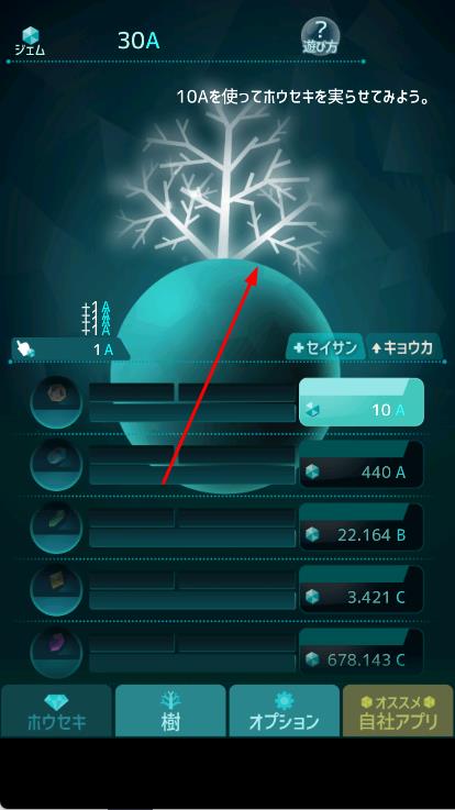 2、宝石收集与利用:当宝石成熟时,点击收取,不同宝石可在商店兑换不同的培育道具,如加速生长的肥料,助力树木更快的成长。