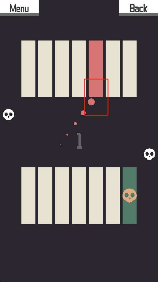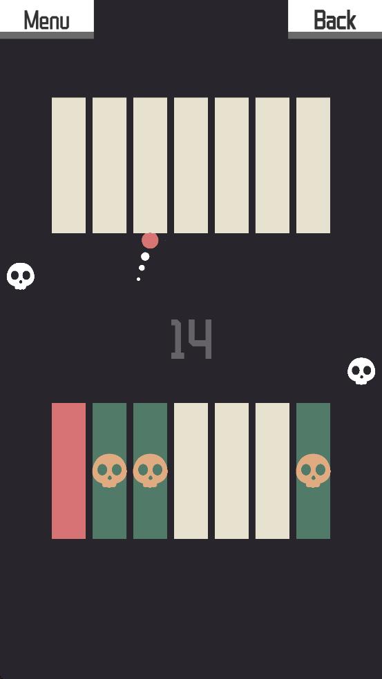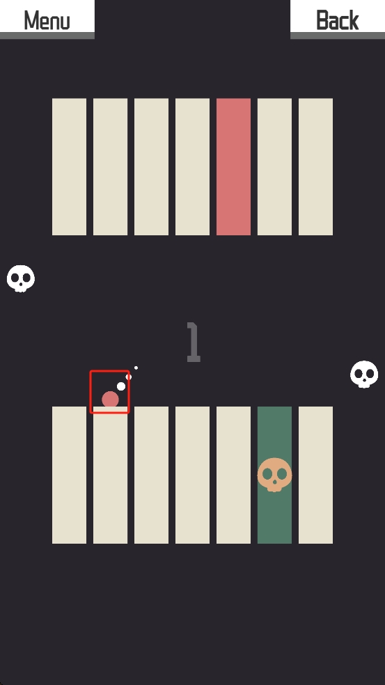 1、开局我们操控粉色小球,看准上下条纹间隙,把握跳跃时机,避开两侧骷髅与中间的障碍。