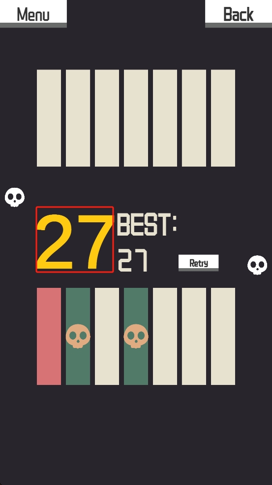 3、撞到非红色区域游戏就结束了,结算界面显示得分27,点击Retry按钮重玩,挑战突破现有成绩。