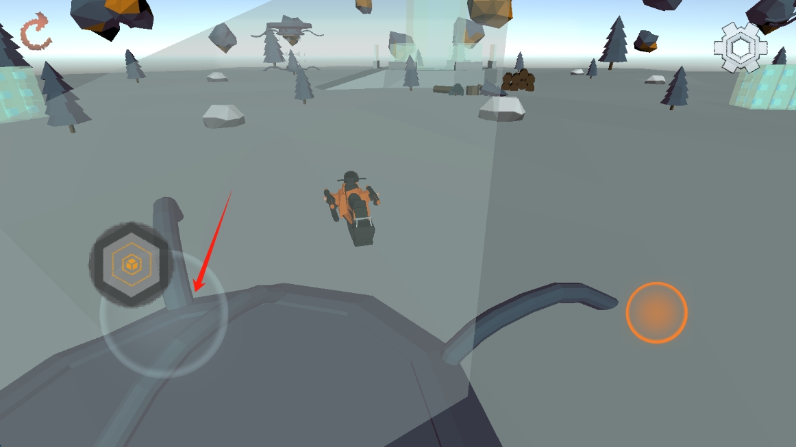 3、游戏中,熟练运用虚拟按键,控制雪地摩托在雪地场景中灵活移动,躲避障碍,争取以最快速度完成竞速任务。