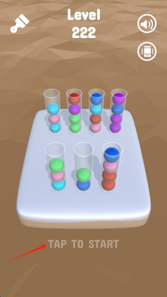 1、在游戏启动界面,点击Tap-To-Start,进入第222关的颜色分类挑战,点击开始游戏。