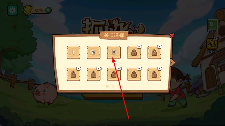 1、进入游戏,在关卡选择界面,选择关卡1,点击进入。