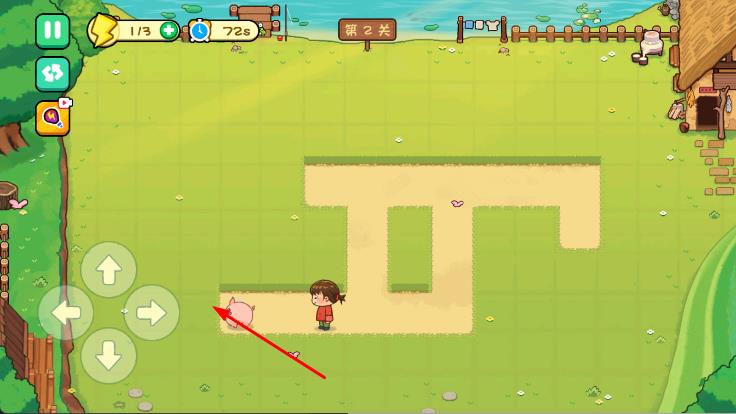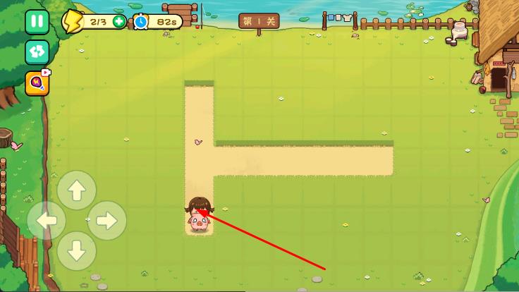 2、进入关卡后,使用左边的虚拟按键,上下左右方向键,控制角色移动,在场景中寻找并抓住目标动物。