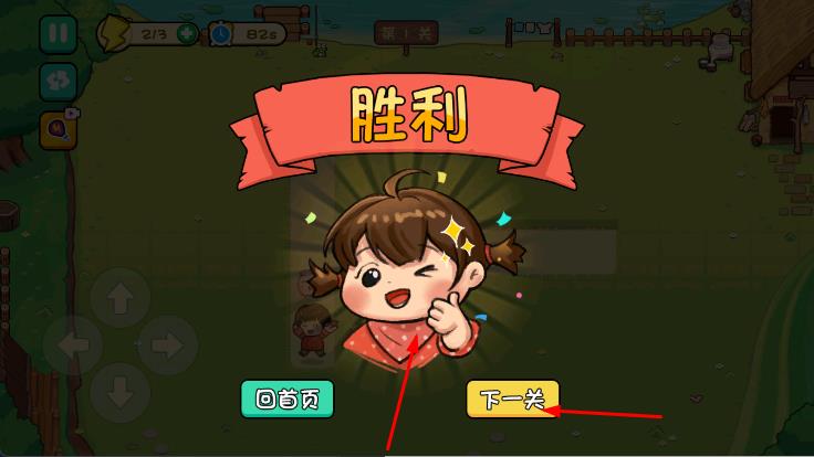 3、成功抓住目标动物后,出现胜利界面,点击下一关按钮,进入下一个关卡继续挑战。
