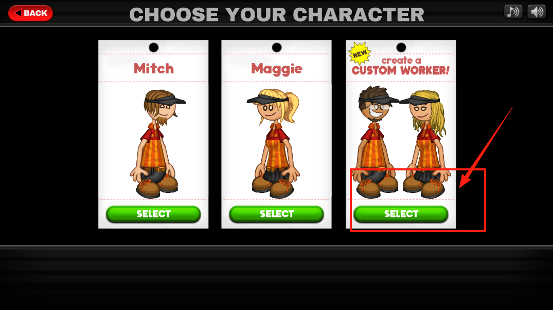 1、进入角色选择界面,能看到Mitch,Maggie和自定义工人选项,想自己捏角色,就点最右边create a CUSTOM WORKER下方的SELECT,开启自定义流程。