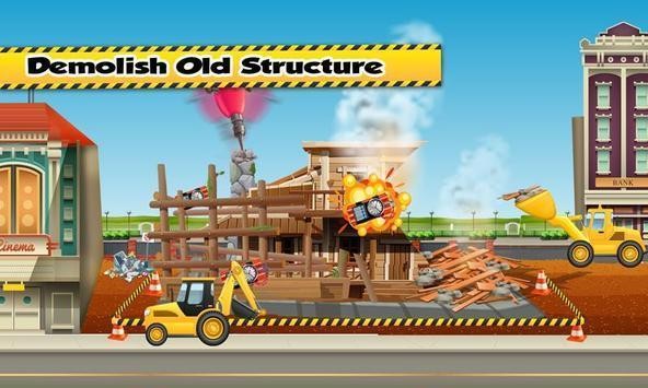 1、画面里有黄色推土机,右下角有个带箭头的按钮,点击这个按钮操控推土机去清理废墟,把倒塌的房子残骸一点点推走完成拆除任务,让工地变整洁。