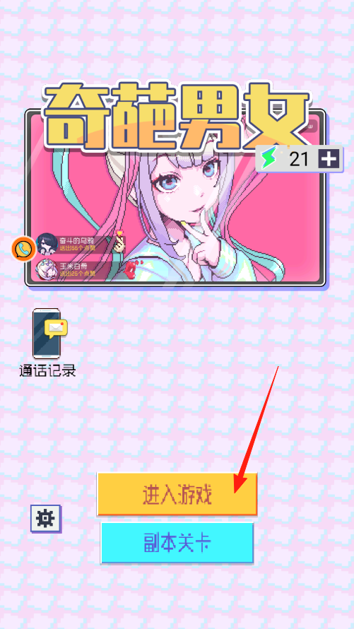 1、看到进入游戏按钮,点它就能开启奇葩男女的主线剧情,进去后跟着引导,认识游戏里的角色,解锁聊天互动这些基础玩法,慢慢体验故事发展。