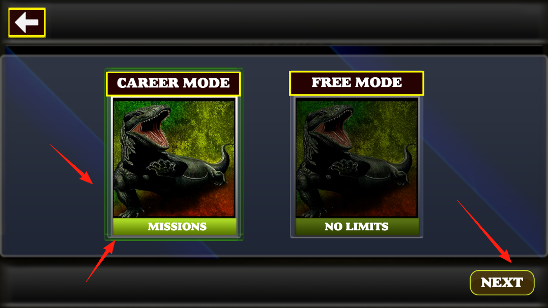 2、进入模式选择界面,左边是CAREER MODE,想做任务就点这个,完成里面的MISSIONS,选好模式后点右下角NEXT,就能开始跟着任务指引玩,体验有目标的闯关。