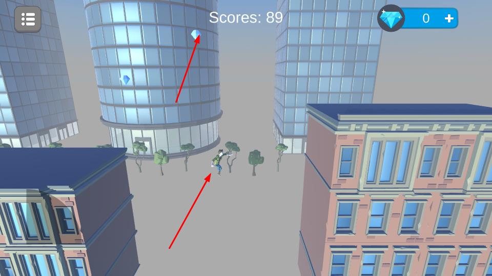 2、跑酷过程中操控角色跨越建筑,留意空中钻石并收集,然后去为提升收益奠定基础。