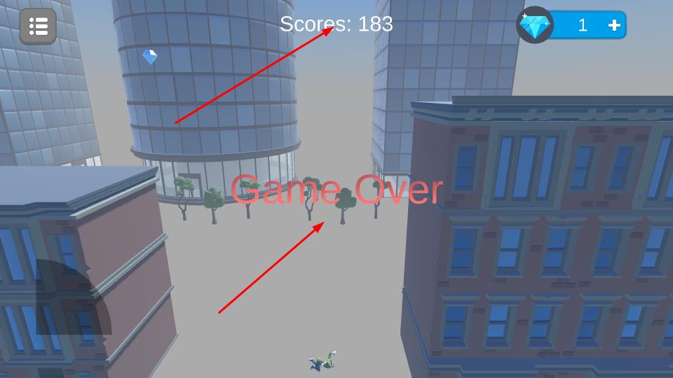 3、持续奔跑时关注上方得分获得金币,避免角色坠落,一旦坠落触发Game Over,结束游戏进程。