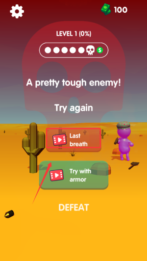 3、若不慎在游戏中落败,无需气馁,观看精彩视频即可迅速恢复,再次投身激烈战斗。