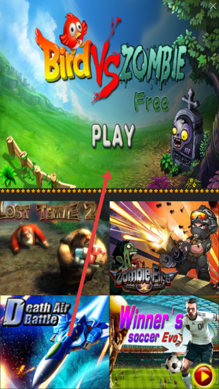 1、在Bird-Vs-Zombie-Free主界面,点击中间PLAY按钮开启游戏,暂忽略下方其他游戏推荐,率先投身鸟类对抗僵尸的冒险,迈出挑战第一步。
