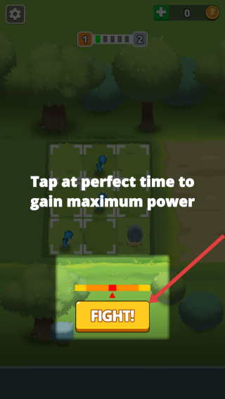 1、战斗前观察能量条,在红色箭头对齐最佳区域时点击FIGHT,可获取最大战力加成,让己方部队初始攻击更具优势,为对战奠定基础。