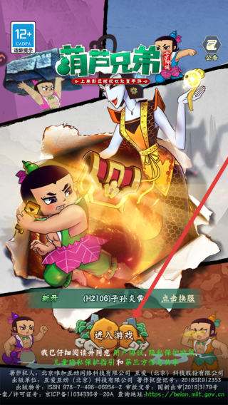 2、登录成功后,玩家可以按照提示,通过点击进入游戏按钮,开启葫芦娃主题的冒险之旅。