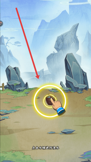 3、进入游戏后,跟随教程提示,比如点击场景中的水桶图标接水,推也可以进新手引导进程。