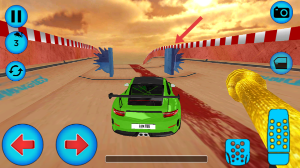 2、在赛道行驶时,需要操控驾驶的方向避开周围的尖刺障碍,防止车辆受损,拖累驾驶速度。