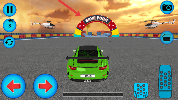 3、驾驶自己的赛车驶向前面SAVE POINT的拱门,抵达保存点,完成一段路程后保存进度。