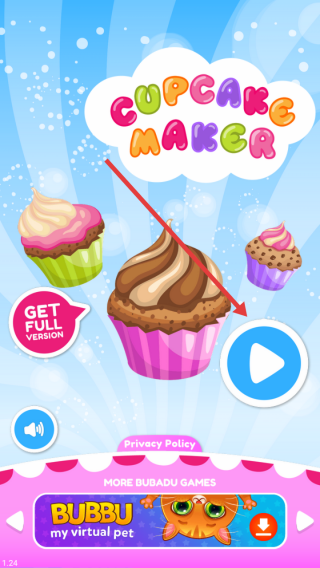 1、主界面点击蓝色播放键,进入游戏,于顶部多样蛋糕胚中选定样式,开启纸杯蛋糕制作之旅。