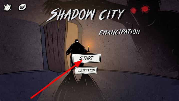 1、进入界面后,点击START按钮,开启SHADOW CITY: EMANCIPATIO冒险,进入解谜场景。