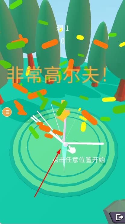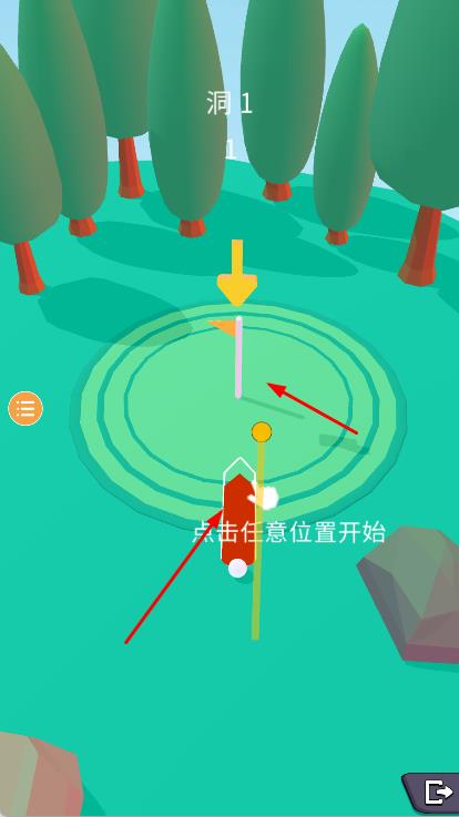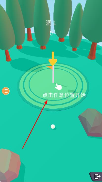 1、进入游戏,在游戏界面中,会看到高尔夫球洞和高尔夫球,根据提示,点击屏幕任意位置开始游戏。