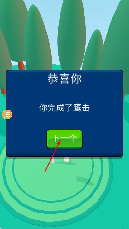 3、成功将球打进洞后,显示完成了的提示界面,点击下一个按钮,进入下一个关卡继续挑战。