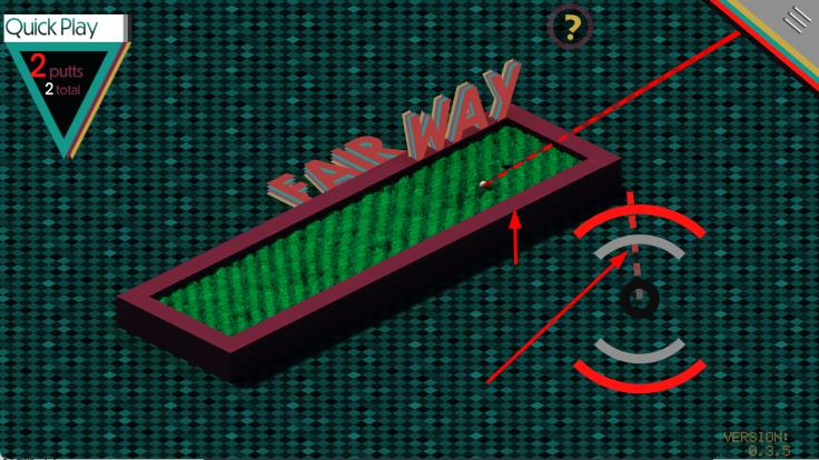 2、目标是用尽可能少的尝试次数,将球打进洞里,点击屏幕,控制高尔夫球的移动方向和力度,将球打向洞口。