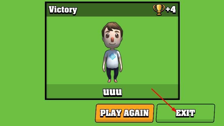 3、成功赢得比赛后,出现胜利界面,获得的奖励,点击EXIT按钮退出比赛,或点击PLAY AGAIN按钮再次挑战。