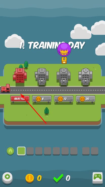 2、进入关卡界面后,通过点击下方的操作按钮,控制快递车辆的移动,规划最优化路线,将货物运送到指定地点。