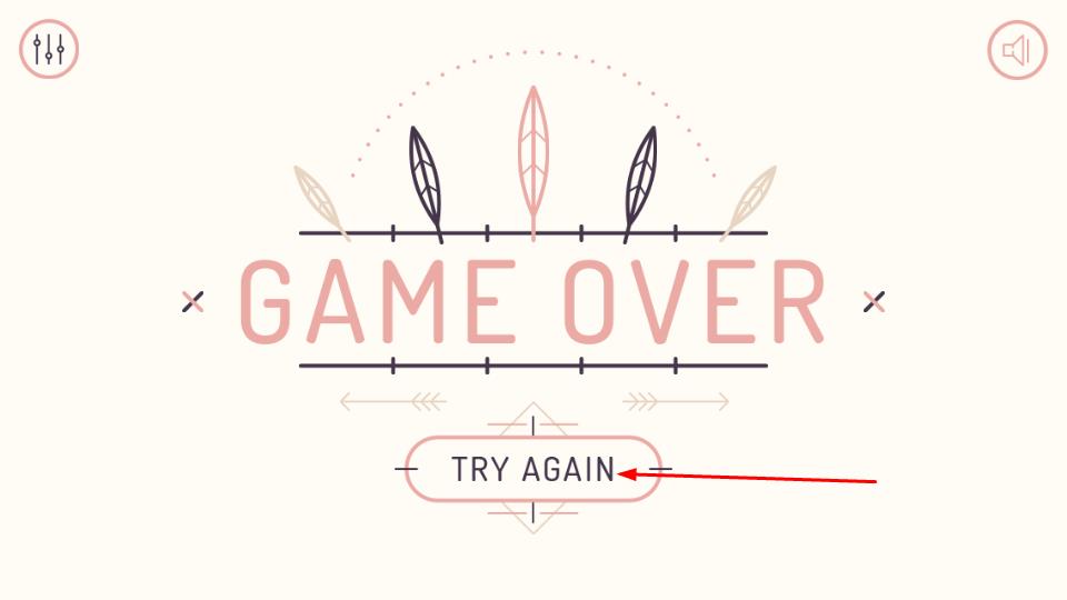 3、若角色触碰障碍,触发GAME OVER,点击TRY AGAIN按钮,然后就能够重新挑战游戏。