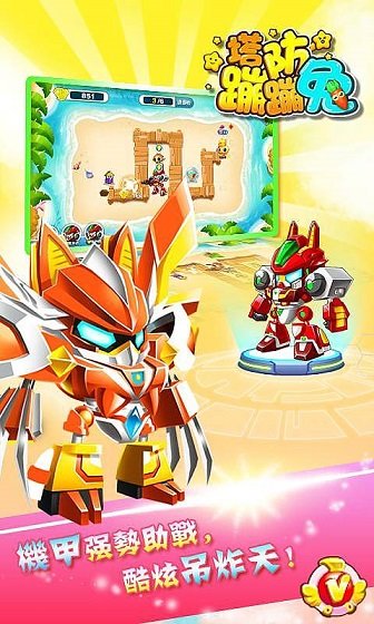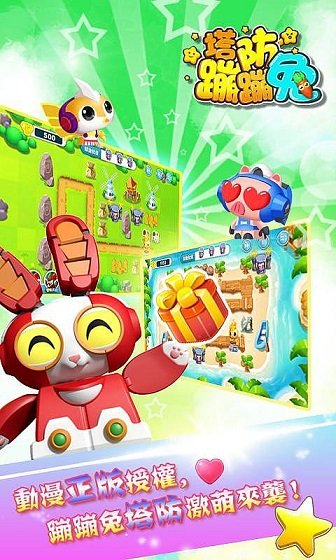 - 塔防蹦蹦兔是一款策略塔防类作品,完美还原动漫中的经典角色与世界观,可爱风格的画面让老少玩家都能轻松接受,玩家通过点击操作配置防御塔,阻止怪物入侵