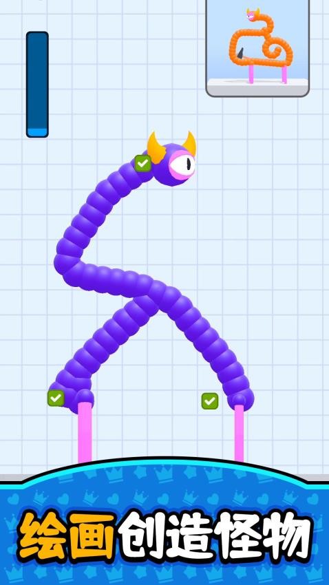 1、核心创作采用触屏绘制机制,通过简单手势完成角色设计。长线条增加攻击范围,封闭图形提升防御力,不同颜色对应各类属性加成。