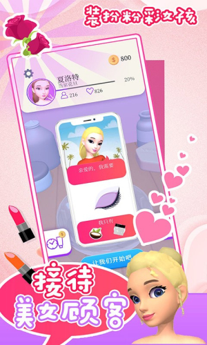 3、游戏剧情设计丰富多彩,玩家将扮演专业美妆师角色,根据不同顾客的肤质特点和个性化需求,定制专属美妆解决方案,体验真实的职业挑战。