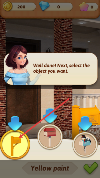 1、开启游玩进入装饰房间的页面,按指引选目标的装饰,按照自己的喜好选择,点绿色对勾确认。