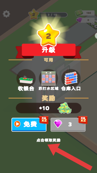 3、显示等级升级到2极,可建造多个区域等级就会越来越高,每次升级都会获得奖励金币+10。