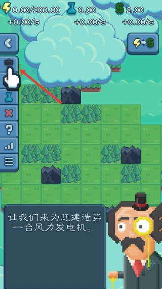 1、进入游戏,点击建造按钮,开启风力发电机的建造流程,为后续生产能源做准备。