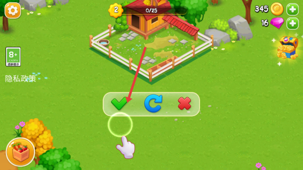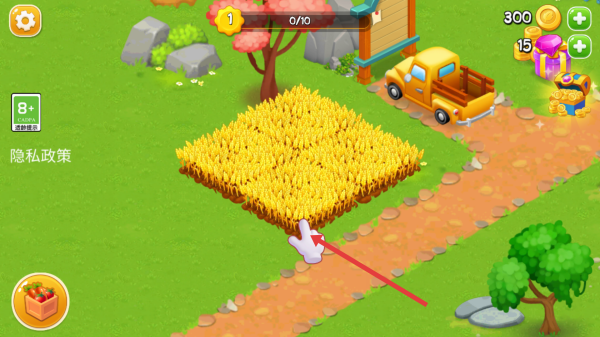 1、开局需要点开黄色长杆让石块掉落,同时清理路面,获取可种植的土地,并且解锁新区域。