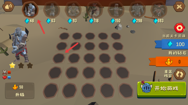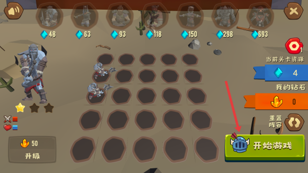 2、将士兵全部完成英雄部署后,点击开始游戏按钮,正式开启战斗挑战。
