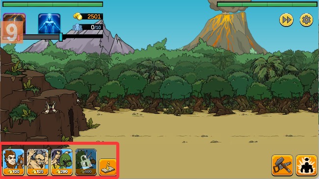 1、进入游戏后,从史前时代开始,通过不断派遣斧兵与弓箭手来抵御敌军进攻,积累资源以解锁下一时代的科技与兵种。